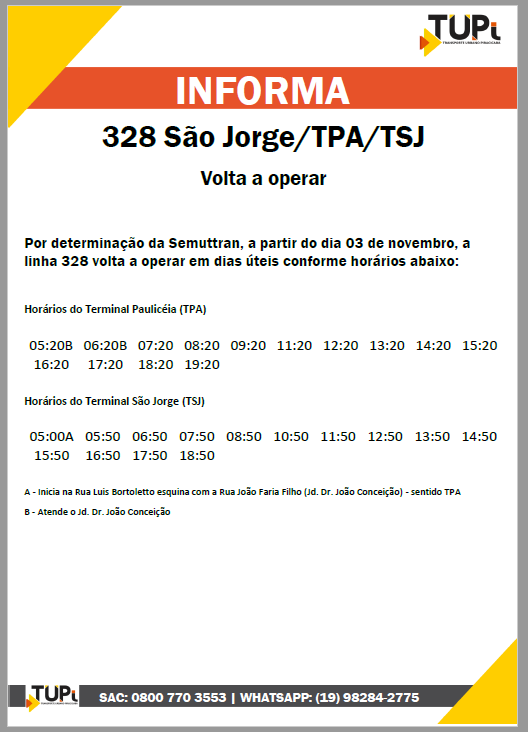 Retorno de operação da linha 328-São Jorge/TPA/TSJ