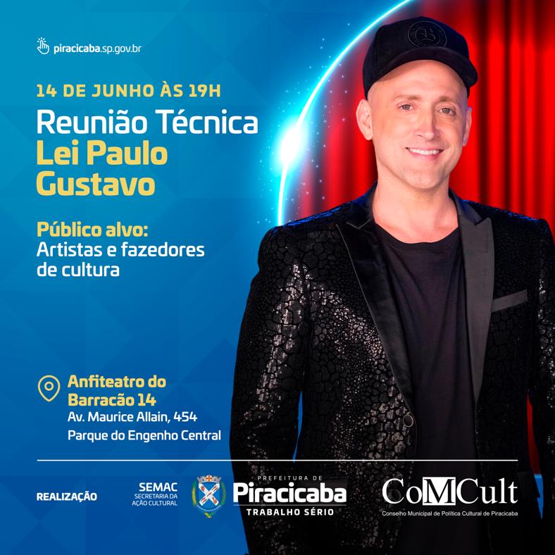 Antes da audiência pública com a sociedade civil para discutir a Lei Paulo Gustavo, cuja data será definida em breve, a Prefeitura de Piracicaba, por meio da Semac (Secretaria Municipal da Ação Cultural), realizará uma reunião técnica aberta à população no dia 14 de junho, às 19h, no Armazém 14 do Parque do Engenho Central.
