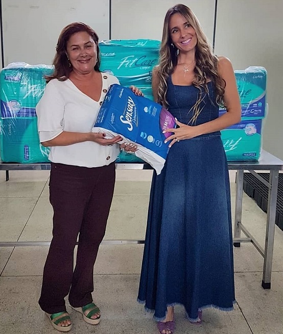 Cristiane Teixeira, uma das fundadoras da Trifatto, fez a entrega das doações para a primeira dama Sandra Negri, presidente do Fussp.