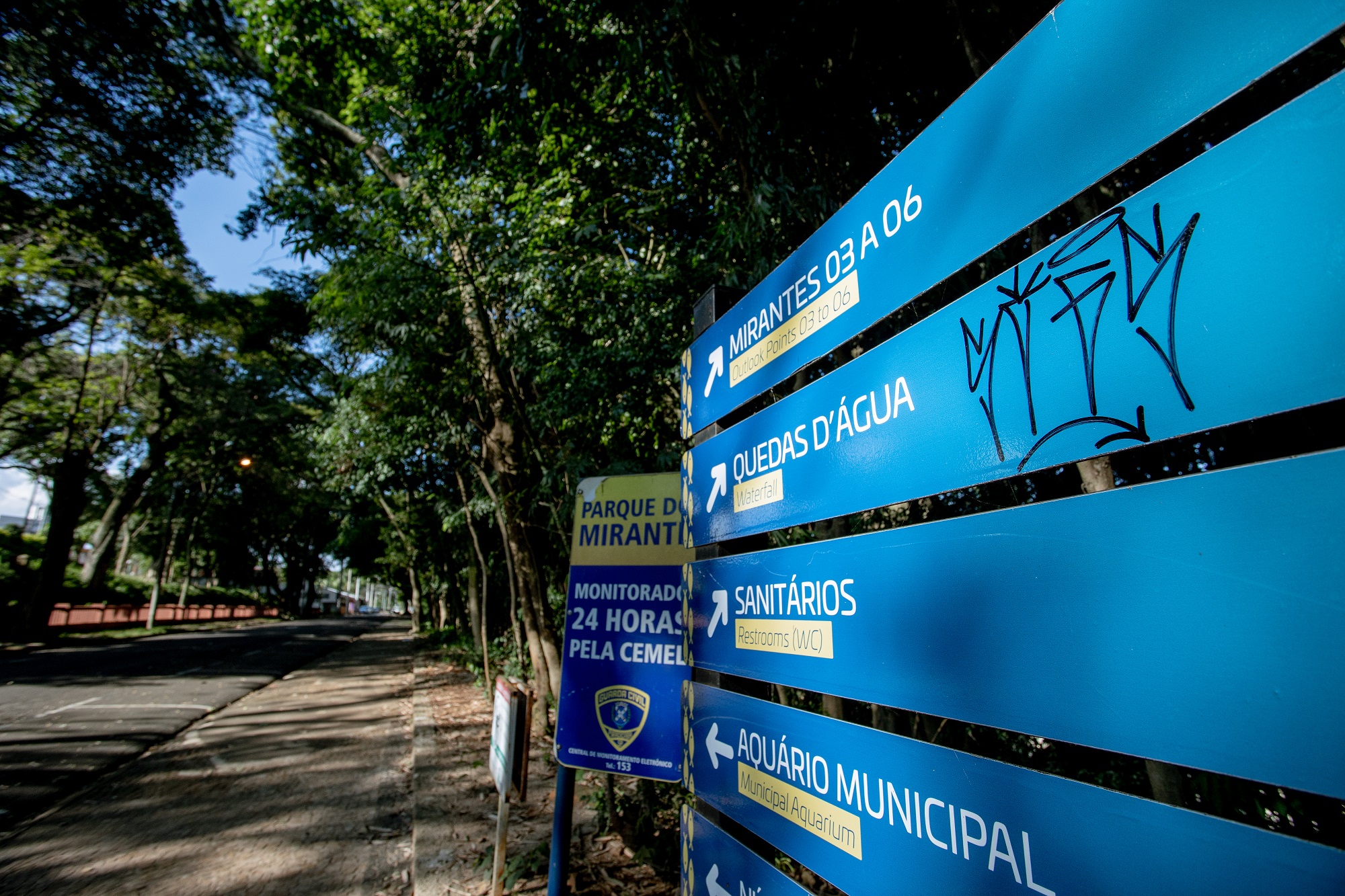 Revitalizadas em meados de fevereiro, ou seja, há menos de dois meses, as placas de sinalização turística do Parque do Mirante já possuem pichação, poluindo o visual e prejudicado a eficiência quanto à orientação aos turistas.