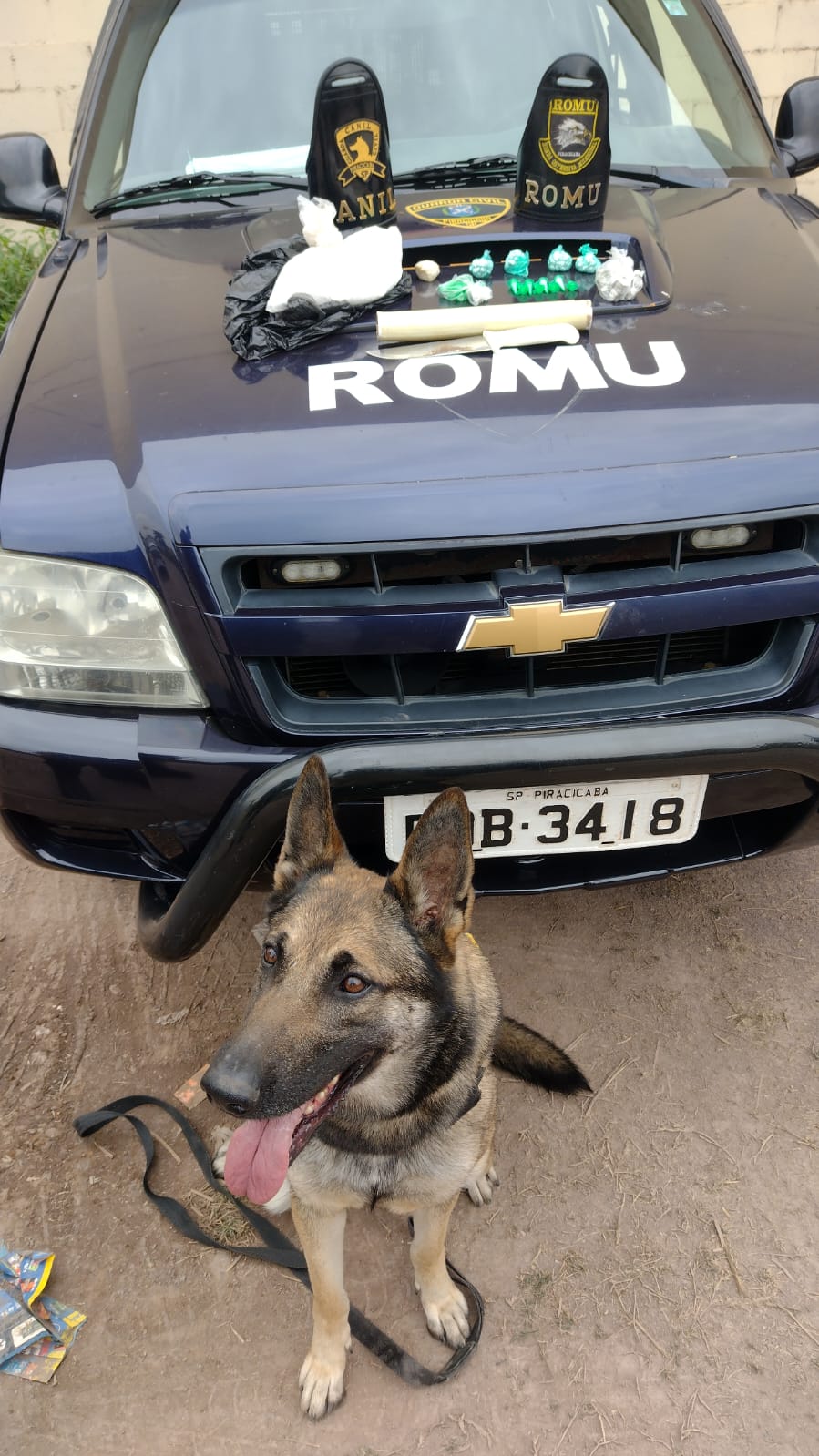 As equipes da Romu 08, formada pelos GCs Everton, Cavalcante e Bottene, e do Canil, formada pelos GCs Geison, Leandro, Bombo e os cães Maya e Radu, estavam em patrulhamento pelo local para combater intenso tráfico realizado em rua do bairro, quando um indivíduo, ao avistar as viaturas, saiu correndo e adentrou na mata, não sendo possível localizá-lo. As equipes então começaram busca pela área de mata e a cadela Maya localizou, sob folhas secas, um saco preto contendo drogas e material para embalo. Todo o material foi recolhido e encaminhado ao 5º Distrito Policial.
