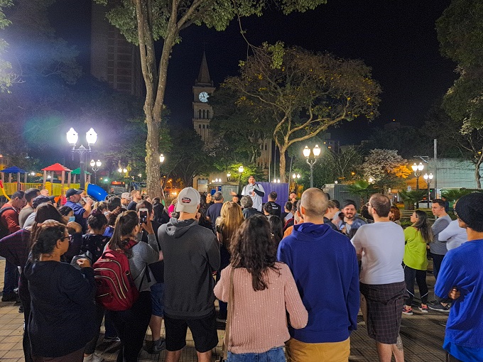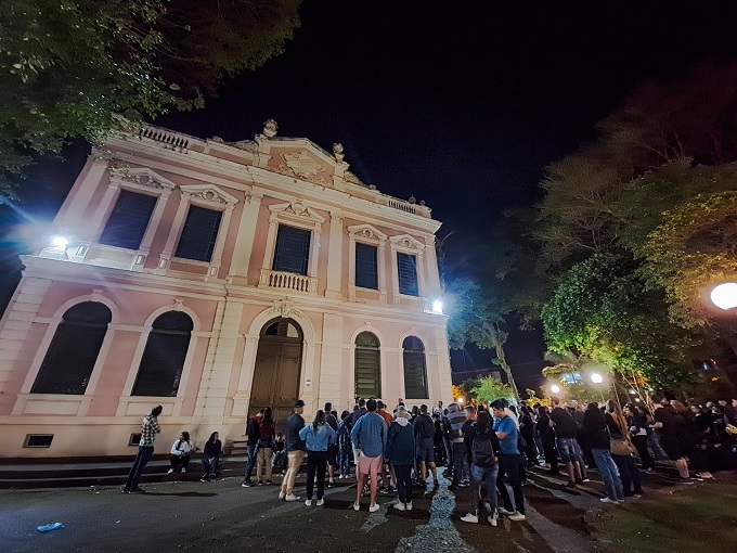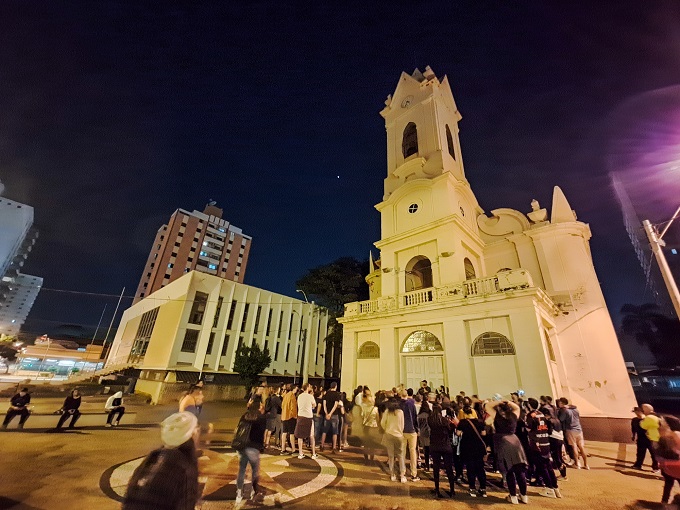 Igreja de São Benedito foi outro ponto de parada do roteiro De acordo com a diretora de Turismo de Piracicaba, Alessandra Freire, que compareceu à caminhada, as lendas locais têm relação direta com o desenvolvimento da cidade. "Ao serem contadas, essas histórias são preservadas, ou seja, estamos mantendo vivo um patrimônio imaterial da comunidade, tornando as lendas conhecidas e fazendo com que continuem sendo passadas de geração a geração. Foi muito bacana ver a população se apropriando disso no evento", observou. Para o empresário Fabio Benevides, que acompanhou todo o trajeto, a experiência de conhecer a cidade e as lendas serviu para observar a cidade por uma perspectiva inusitada. "Foi sensacional participar deste passeio incrível, um verdadeiro resgate histórico da cultura e das lendas dessa cidade maravilhosa chamada Piracicaba. A melhor parte disso é que alguns lugares que eu passo quase que diariamente agora têm um novo significado e simbologia. Só tenho a agradecer a todos os envolvidos e que possamos ter mais eventos como esse aqui na cidade", falou. Quem também aprovou a iniciativa foi a assistente-administrativo Tábata Larissa Gialorenço, que mora em São Pedro, mas fez questão de comparecer à caminhada junto de amigos. "Foi um passeio bem diferente do que estou habituada. A proposta foi muito interessante e eu gostei de todas as lendas compartilhadas pelo percurso. Com certeza, foi uma noite bem enriquecedora. Parabéns aos organizadores", disse.