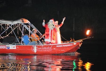 Dia 12/12 – sábado – Rio Piracicaba 20h – Papai e Mamãe Noel cantores navegam suas canções pelo Rio Piracicaba, no barco iluminado. A saída acontece do píer em frente ao Largo dos Pescadores, com a dupla percorrendo a área dos restaurantes da Rua do Porto.
