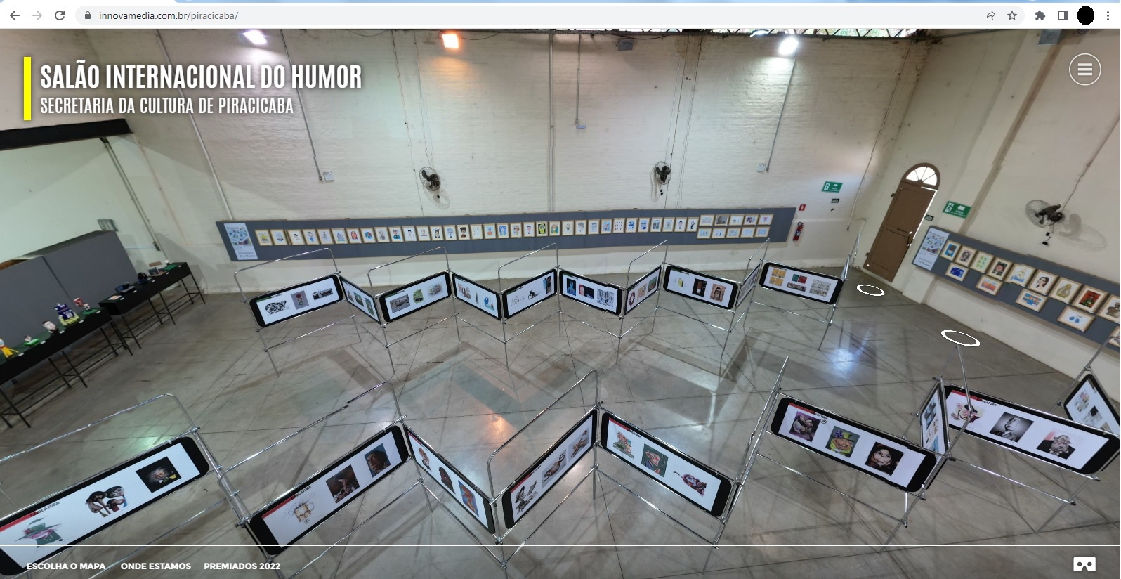 Visitar a 49ª edição do Salão Internacional de Humor de Piracicaba sem sair de casa, mas como se estivesse no local da exposição, é possível. O Tour 360º é o recurso tecnológico disponibilizado gratuitamente a quem quer conhecer a mostra e não pode comparecer presencialmente no espaço expositivo. Para a visita on-line é só acessar o site do Salão (salaointernacionaldehumor.com.br) e clicar no botão “faça o tour 360º”. Graças à qualidade das imagens captadas, o “visitante digital” pode ver nitidamente todos os 315 trabalhos, produzidos por 176 artistas de 30 países, selecionadas para mostra.