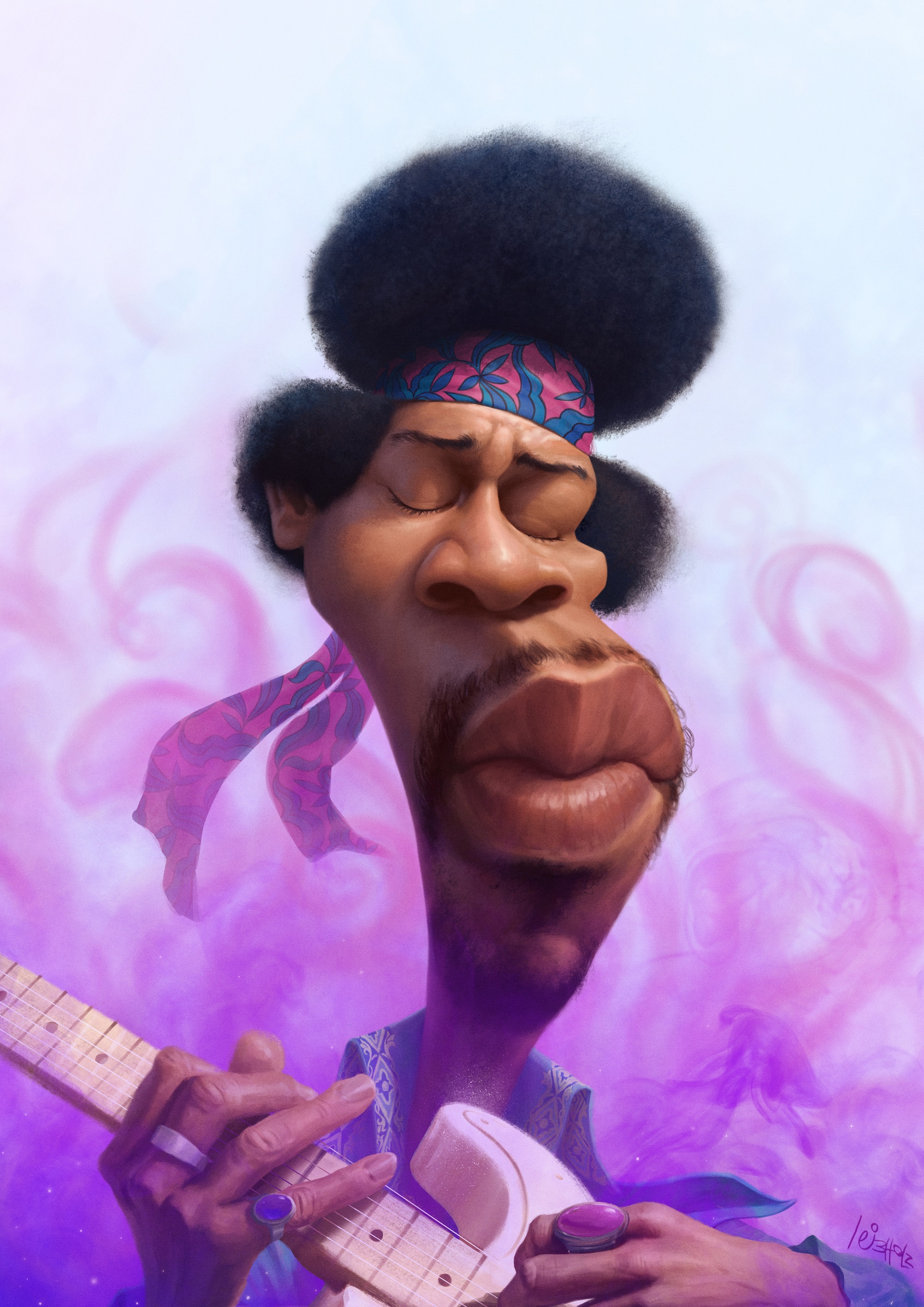 Caricatura de Jimi Hendrix, de Lucas Leibhoz, selecionada para a mostra