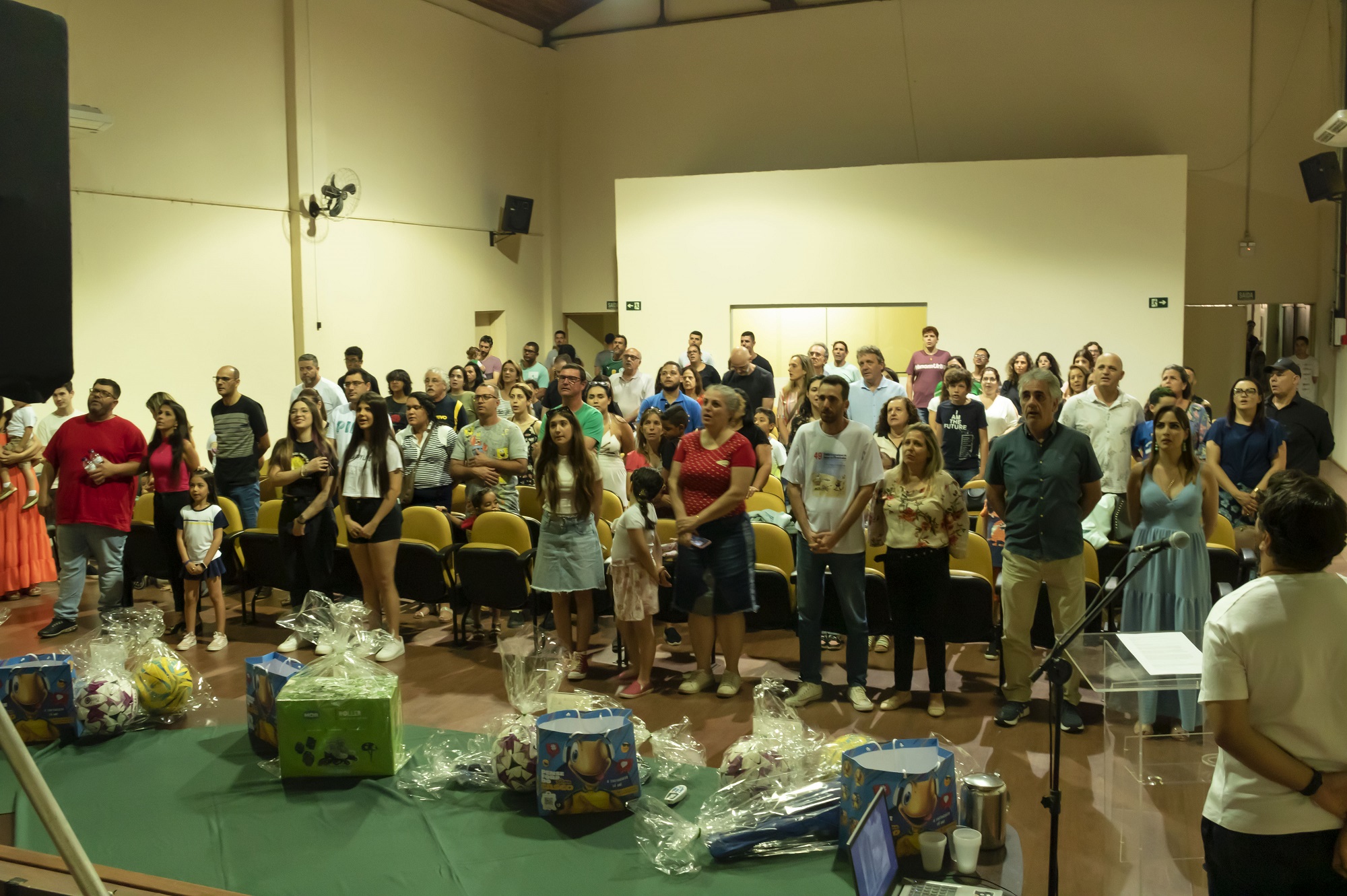 Aos premiados dos 2º e 3º lugares, foram entregues doces, bolas e kit de badminton. Os que ganharam em 1º lugar receberam doces e patins. Todos levaram para casa um troféu.