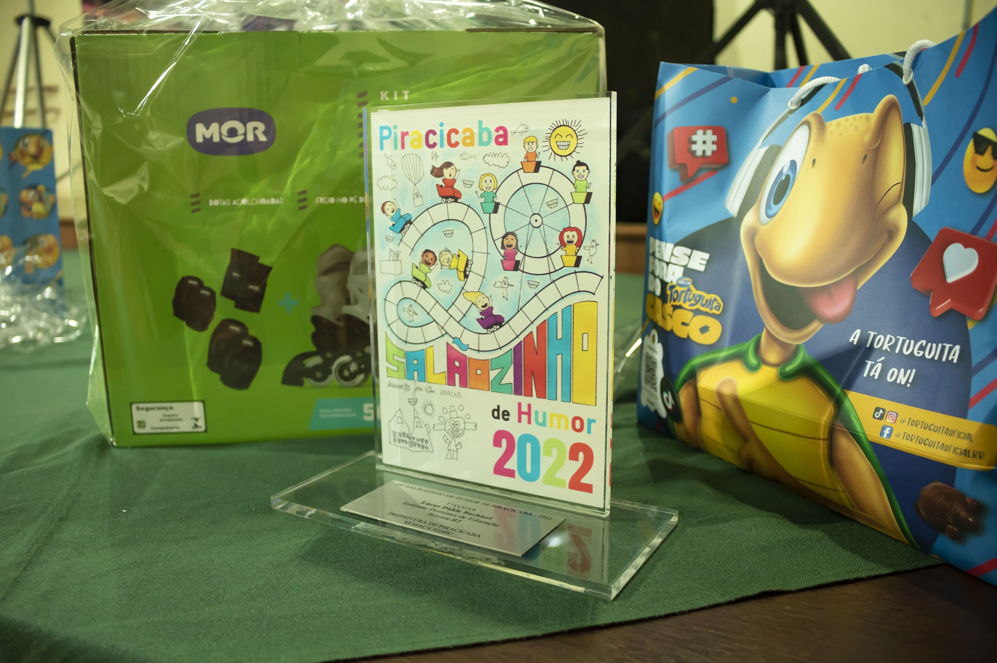 O anúncio dos nomes vencedores e a cerimônia de premiação do 20º Salãozinho de Humor de Piracicaba aconteceram na tarde de ontem, quarta-feira, 12/10, feriado do Dia de Nossa Senhora Aparecida, padroeira do Brasil, e Dia das Crianças. O evento, apresentado pelo diretor do Salão Internacional de Humor de Piracicaba, Junior Kadeshi, ocorreu no anfiteatro do Armazém 14 do Engenho Central, com entrega de prêmios, doados pela Arcor, e espetáculo de fantoches, com o palhaço Bang. O público lotou o local. Estiveram presentes o secretário interino da Semac (Secretaria Municipal da Ação Cultural), Hermes Balbino; a diretora do Museu Histórico e Pedagógico Prudente de Moraes, Érica Frasson, e diretora Instituto Arcor Brasil, Milena Azal.