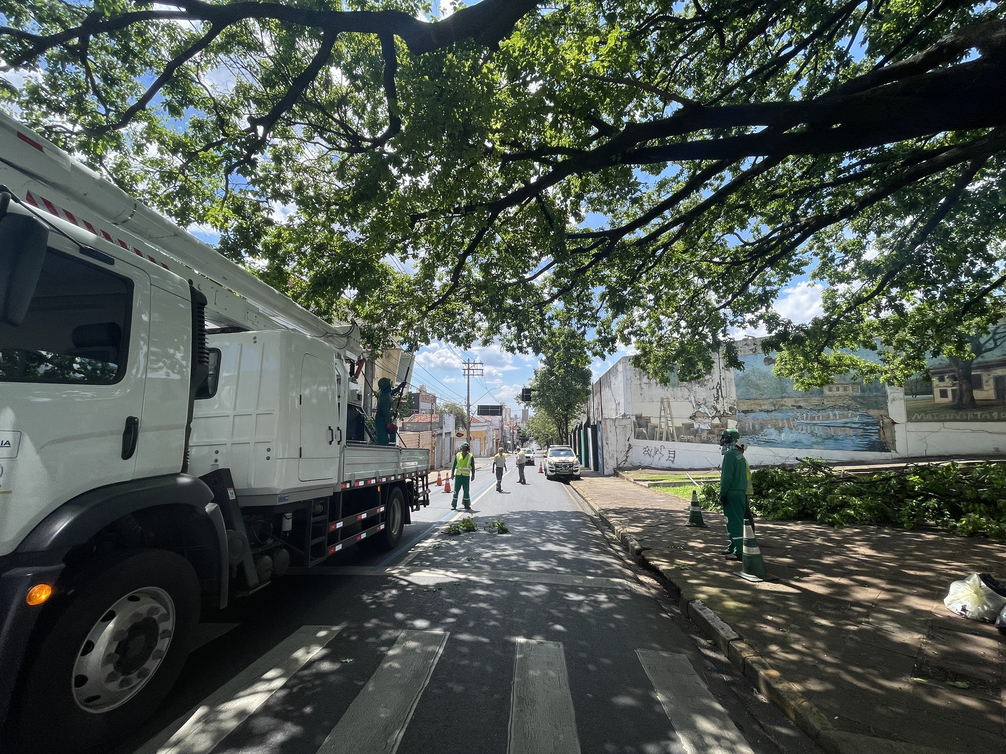Poda de condução, que retirou apenas galhos secos e ramos epicórmicos, aconteceu ontem, 15/11 (Maycon Barbon)
