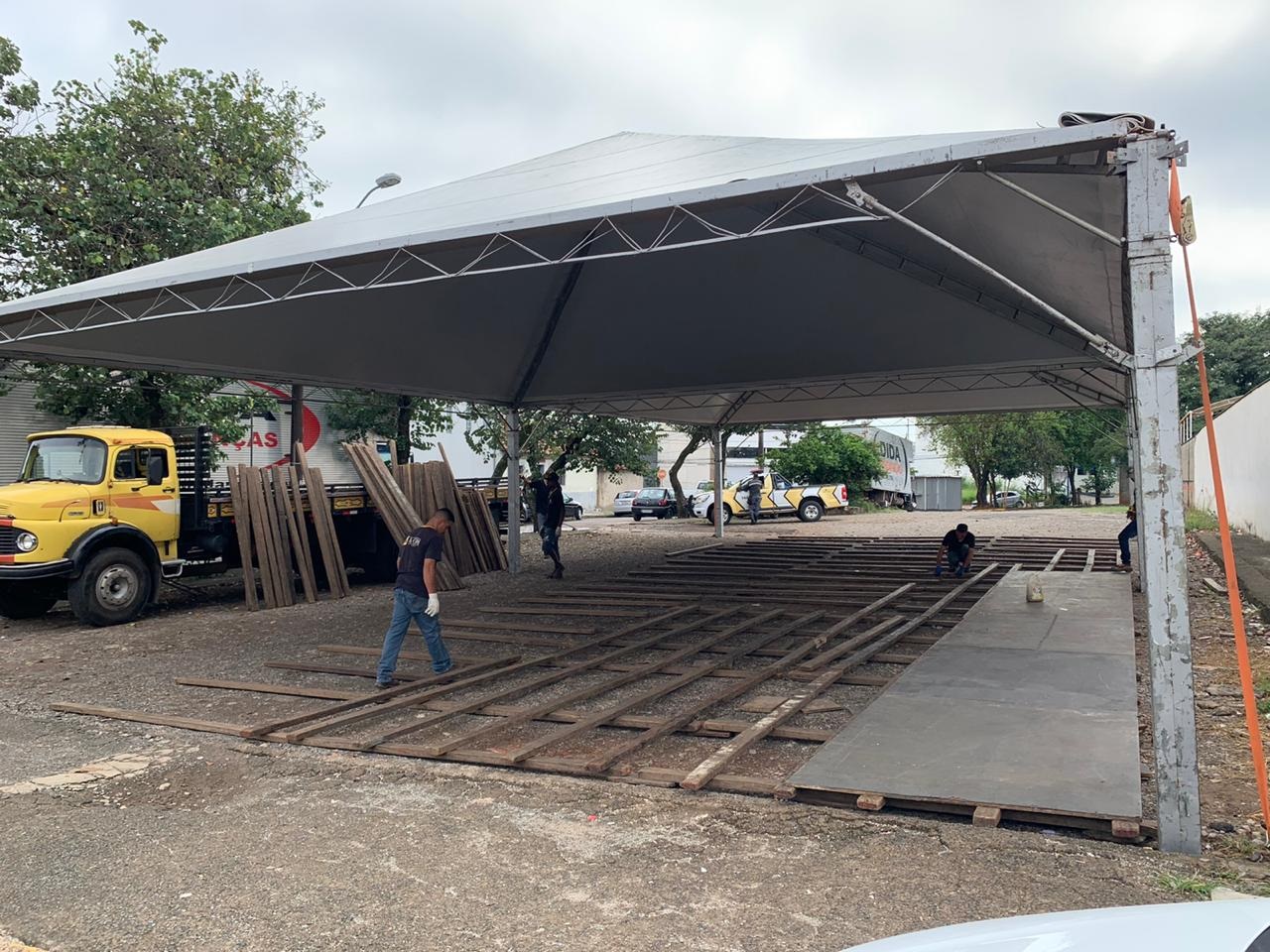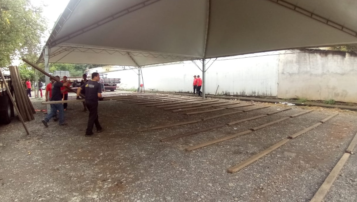 Teve início na manhã desta segunda-feira (30/03) a instalação da tenda para triagem de pacientes sintomáticos para coronavírus ao lado da UPA Piracicamirim – rua Rio Grande do Norte, 135 –, unidade escolhida para ser a porta de entrada exclusiva de pacientes com síndrome gripal durante a pandemia da Covid-19. São 200 metros quadrados cobertos, com proteção lateral e piso adequado para o trabalho dos médicos e enfermeiras que estarão na linha de frente.