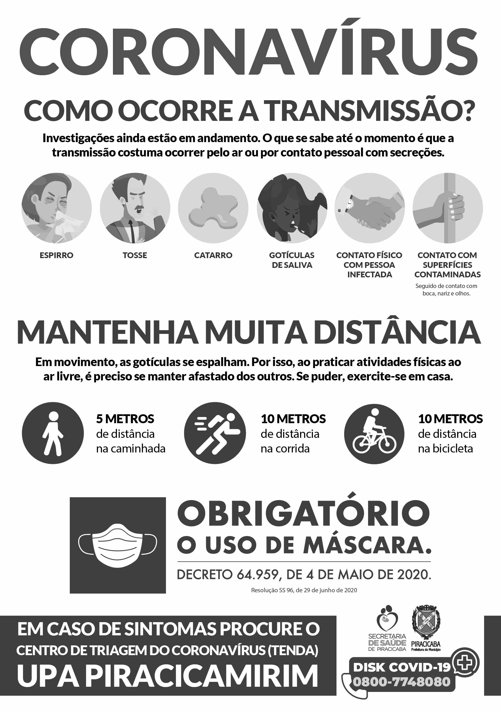 Serão distribuídos folhetos explicativos sobre a doença e como preveni-la, bem como sobre o risco de contágio para as pessoas durante a prática do execício ao ar livre, com conteúdo extraído de trabalho divulgado pela Universidade Católica de Leuven (Bélgica) e Universidade de Tecnologia de Eindhoven (Holanda). Segundo o trabalho, todo exercício físico deve ser feito longe de aglomerações de pessoas e de preferência, em ambiente aberto, em que as pessoas fiquem distantes umas das outras.