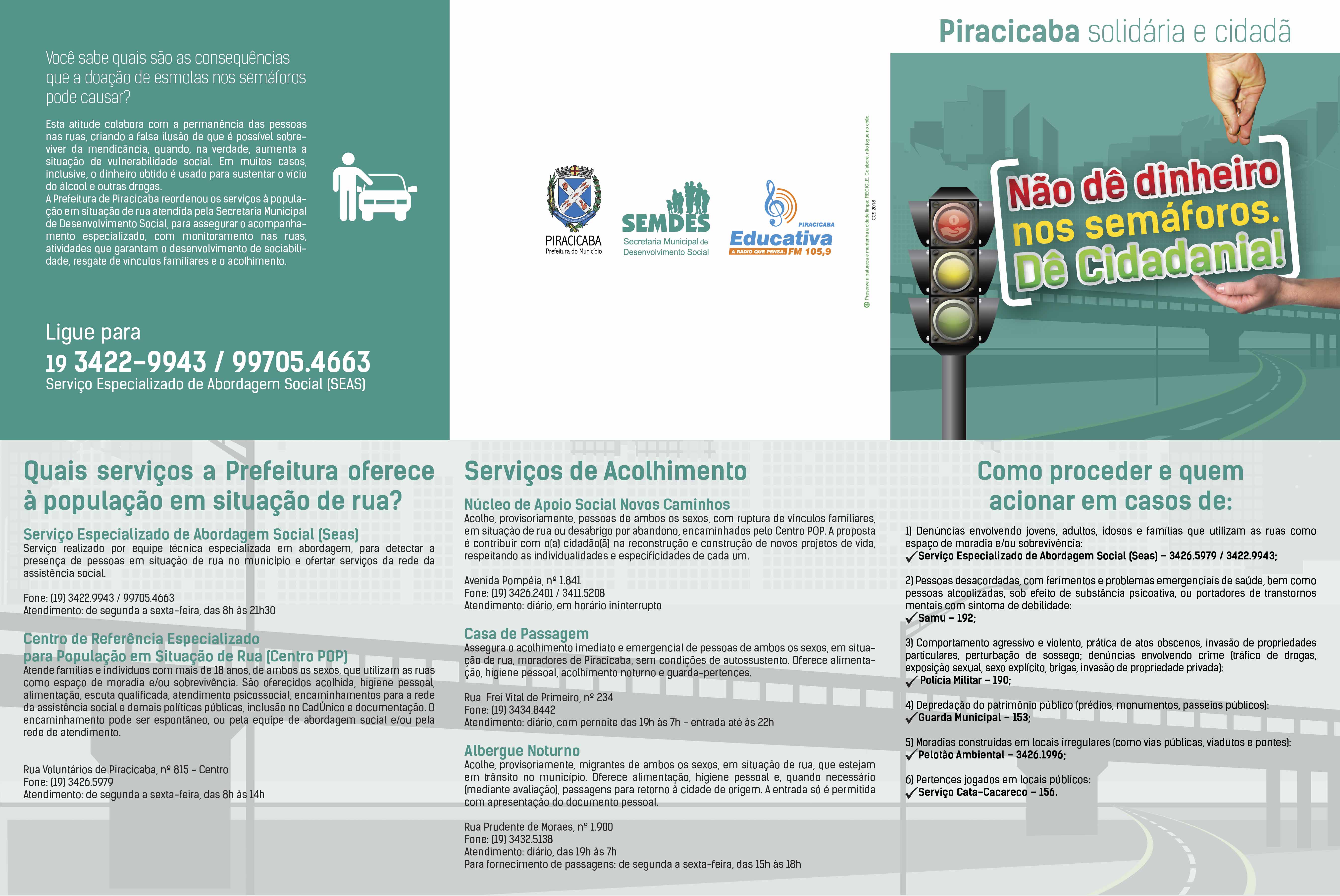 Piracicaba, 10 de julho de 2018 – O Serviço Especializado em Abordagem Social (Seas), inicia amanhã (11), das 13h30 às 16h, uma rodada de panfletagens informativas pelos corredores comercias de Piracicaba. A atividade acontecerá até dia 13 de agosto, sempre uma vez por semana e percorrerá além da área central, os corredores comerciais da Paulista, da Vila Rezende, do Piracicamirim e de Santa Teresinha.