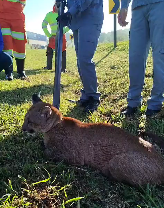 Uma onça-parda (Puma concolor) foi resgatada na manhã de hoje, 15/05, no bairro Santa Rosa (km 28 da Rodovia Fausto Santomauro), em Piracicaba, na pista sentido Rio Claro. O animal, que estava no canteiro lateral, foi identificado pelas equipes da concessionária do trecho, Via Colinas, capturado pelo Corpo de Bombeiros e removido emergencialmente para o Zoológico de Piracicaba. Não houve interdição de faixas nem congestionamento para o resgate.