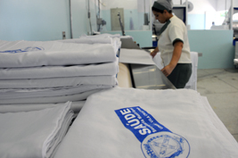 Roupa nova A Secretaria de Saúde também fez a compra de novos enxovais para as unidades. Entre o que foi adquirido estão 3.035 toalhas de banho, 2.662 toalhas de rosto, 7.300 lençóis de cama e 2.500 de berço, 3.700 fronhas e 1.925 aventais. Segundo Fátima Serafim, enfermeira responsável pela coordenação da lavadeira, a distribuição desses enxovais varia de acordo com a demanda de cada unidade, porém, com essa nova compra, é possível manter um estoque de aproximadamente três dias e acomodar aproximadamente 130 leitos.