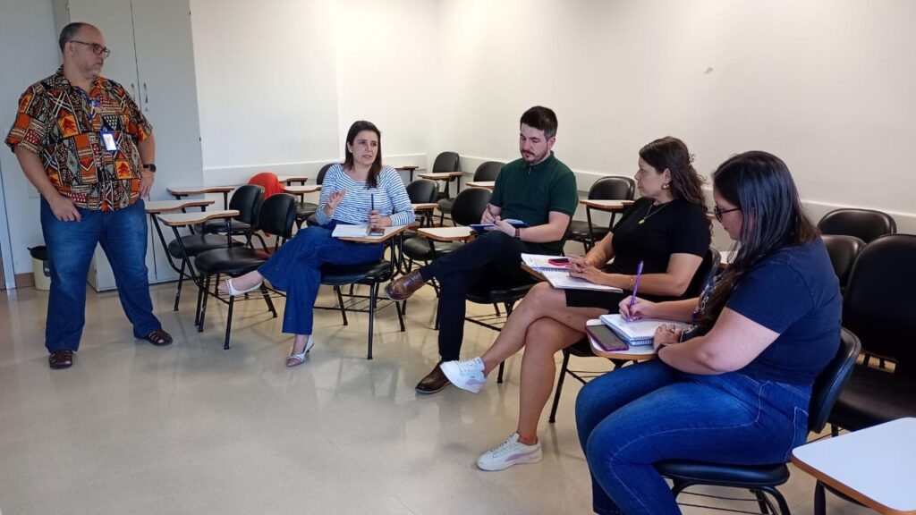 Os detalhes da capacitação foram alinhados em reunião no Senac com a participação da secretária de Turismo, Clarissa Quiararia; do gerente de planejamento turístico municipal, Esdras Casarini; do guia de turismo e docente do Senac Fabrício Medeiros; e de Renata Prates e Mariana Cancilieri, que são, respectivamente, executiva de contas e coordenadora de área do Senac.