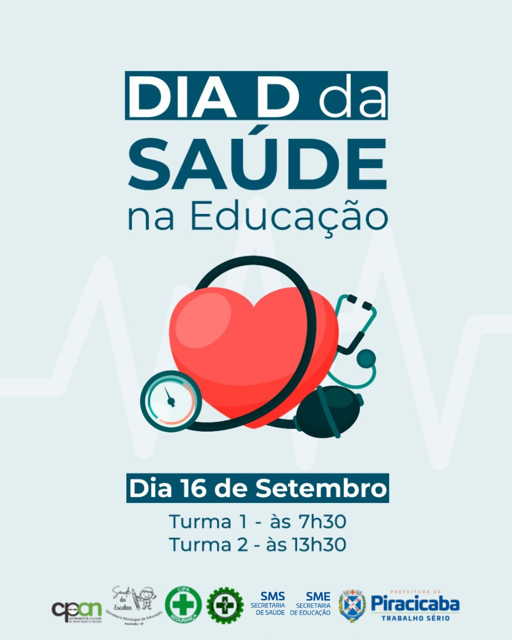 Com o objetivo de estimular os cuidados da saúde dentro dos ambientes da Secretaria Municipal de Educação, o Setor de Saúde do Escolar realizará na próxima sexta-feira, dia 16/09, o Dia D da Saúde, na sede da Secretaria, na rua Christiano Cleopath, 1.902, Alemães.