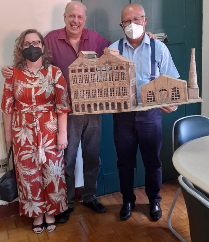 Ao final da visita, Adolpho entregou ao pró-reitor como presente uma maquete de papelão confeccionada pelo artista Paulo Alcides Tibério, o Pauléo.