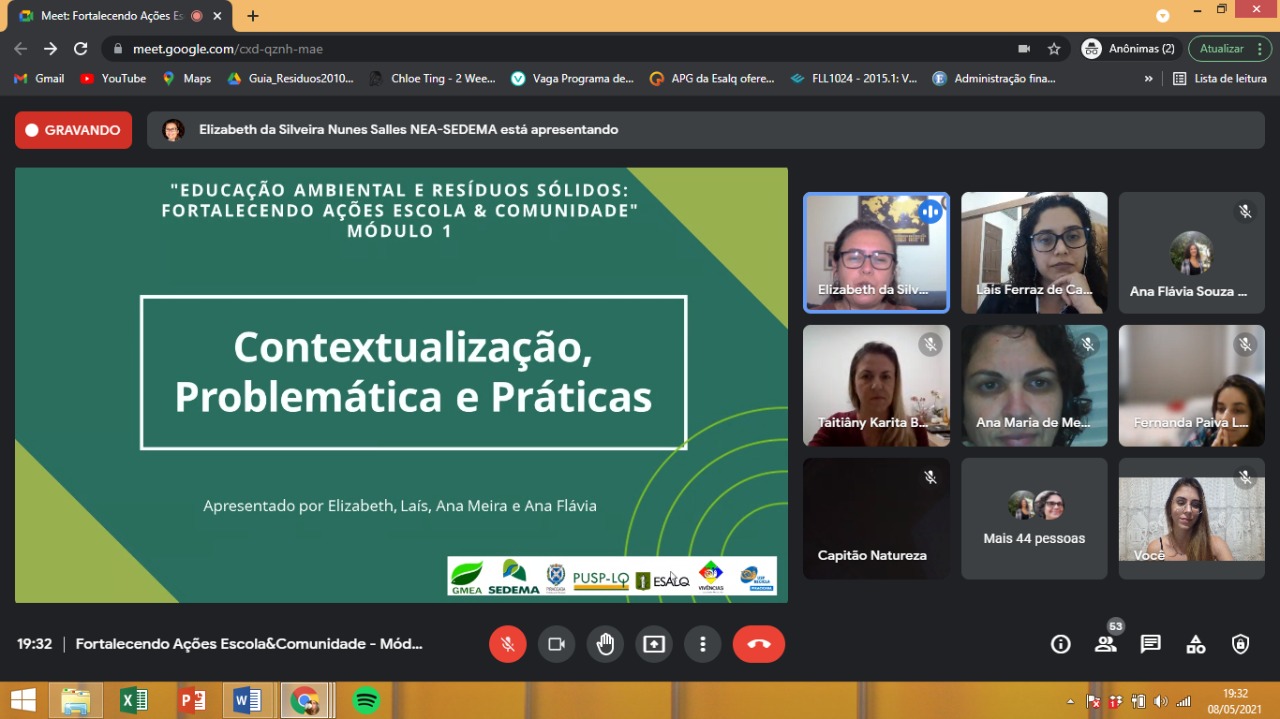 A Secretaria Municipal de Defesa do Meio Ambiente (Sedema), a Esalq/USP Recicla e o Grupo Multidisciplinar de Educação Ambiental (GMEA) iniciaram curso sobre consumo consciente e a importância do gerenciamento correto de resíduos sólidos. O curso Educação Ambiental e Resíduos Sólidos: Fortalecendo Ações entre Escola e Comunidade, que teve inscrições até julho, é oferecido de forma online, sempre às quintas-feiras de agosto, das 19h às 20h30. No primeiro encontro, na quinta-feira, 05/08, além da apresentação da programação, foram abordados conteúdos relacionados à contextualização e à problemática dos resíduos sólidos, além de conceitos básicos e classificação dos resíduos. Também foram debatidas formas de se desenvolver práticas educativas voltadas para a temática dos resíduos sólidos, que podem ser desenvolvidas nas escolas e na comunidade. O secretário da Sedema, Alex Gama Salvaia, está otimista em relação à iniciativa. “Estamos empenhados em fazer uma correta e adequada gestão dos resíduos sólidos no município de Piracicaba. O curso é uma excelente oportunidade de aprendizado e troca de conhecimento. A partir daí podemos nos organizar para outras iniciativas e para outras parcerias”, avalia o secretário. O curso foi idealizado para atender às diretrizes da Educação Ambiental do Plano Municipal de Gestão Integrada de Resíduos Sólidos (PMGIRS), que incentiva a integração escola-comunidade. O processo de integração pode acontecer de duas formas, a escola pode se apropriar de uma pauta ambiental local para o processo de ensino-aprendizagem, incentivando a aprendizagem com atividades ao ar livre. Além disso, a comunidade pode participar e apoiar as ações educativas – dentro e fora da escola – estimulando a formação de pessoas comprometidas com princípios éticos, democráticos, inclusivos, sustentáveis e solidários. Elizabeth Nunes, bióloga do Núcleo de Educação Ambiental da Sedema e membro do GMEA, explica que a gestão dos resíduos cabe ao poder público, porém o consumo consciente e o gerenciamento dos resíduos, com o correto descarte, são responsabilidades fundamentais de cada cidadão. “A integração do público escolar e comunidade onde a escola está inserida podem fortalecer os processos educativos”. Para Ana Maria Meira, educadora do Programa USP Recicla do campus Luiz de Queiroz, “os encontros são uma oportunidade de diálogo e interação com a comunidade em temas essenciais como as responsabilidades na gestão e gerenciamento de resíduos e em descobrir pessoas e grupos para agirem em seus espaços”, aponta Ana.