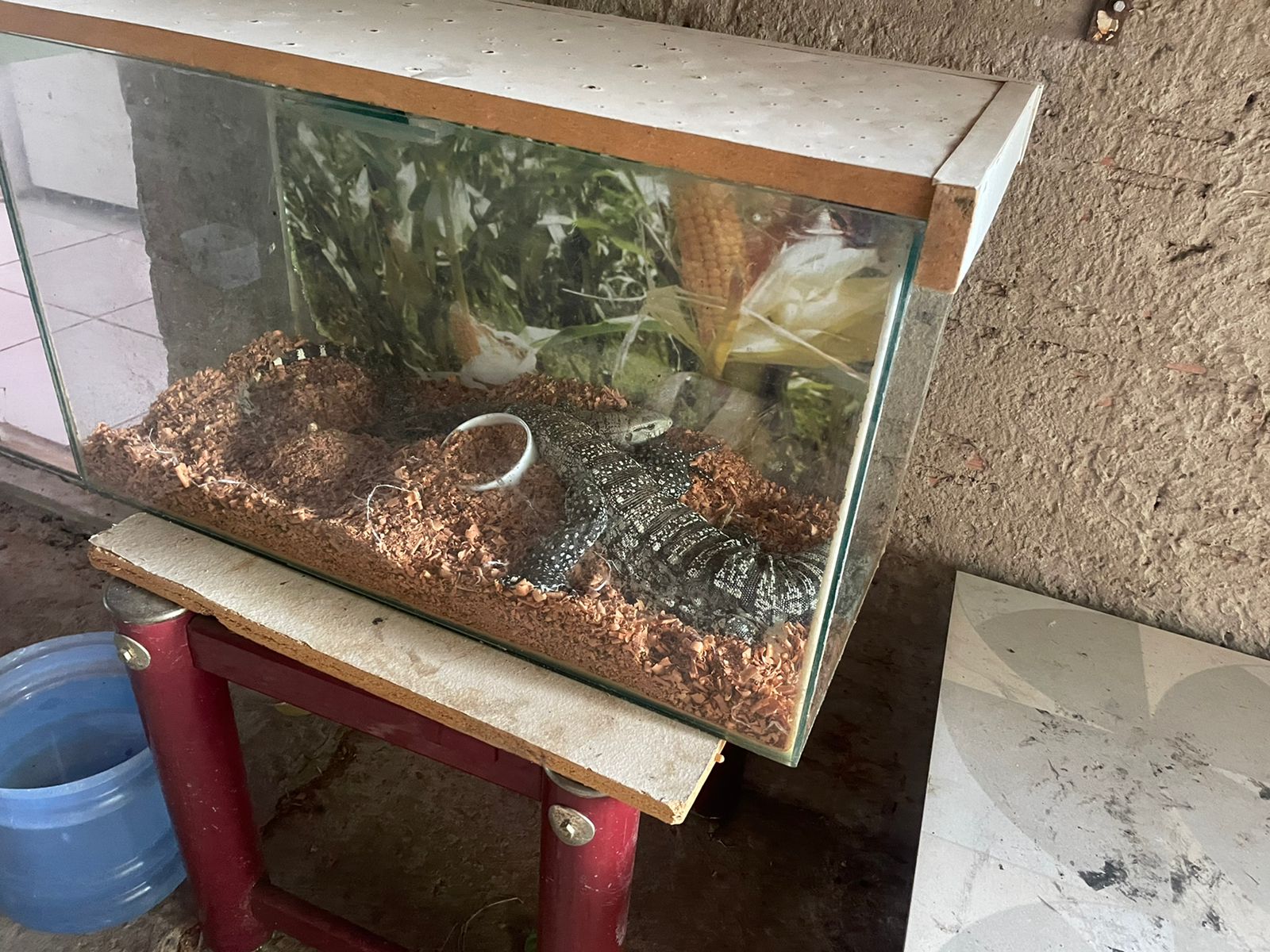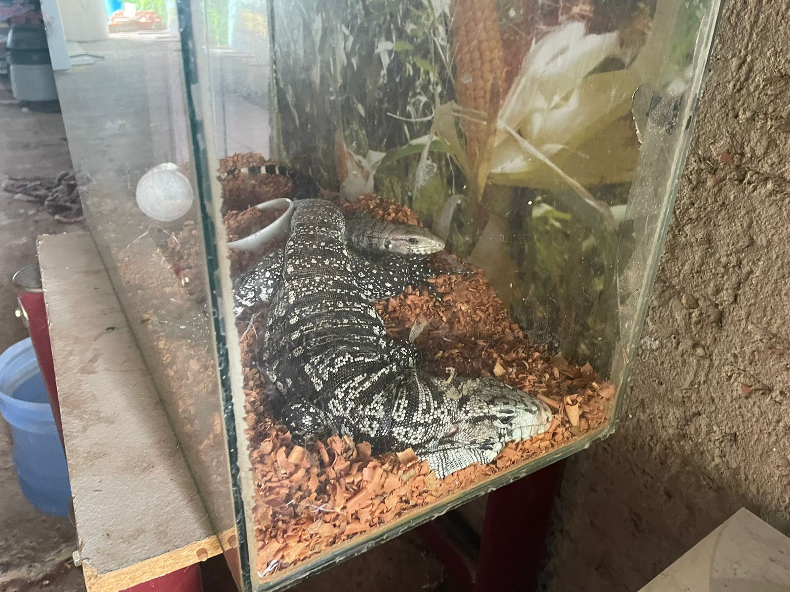 Numa averiguação de denúncia de maus-tratos a animais domésticos, as equipes da Secretaria Municipal de Defesa do Meio Ambiente (Sedema), da Guarda Civil e do Pelotão Ambiental e do Núcleo do Bem-Estar Animal encontraram hoje, quinta-feira (30), dois lagartos teiús e uma cobra numa propriedade no bairro Volta Grande, além de um pássaro Coleirinha, que foi solto pelo infrator, e também dois ferrolhos de arma de fogo.