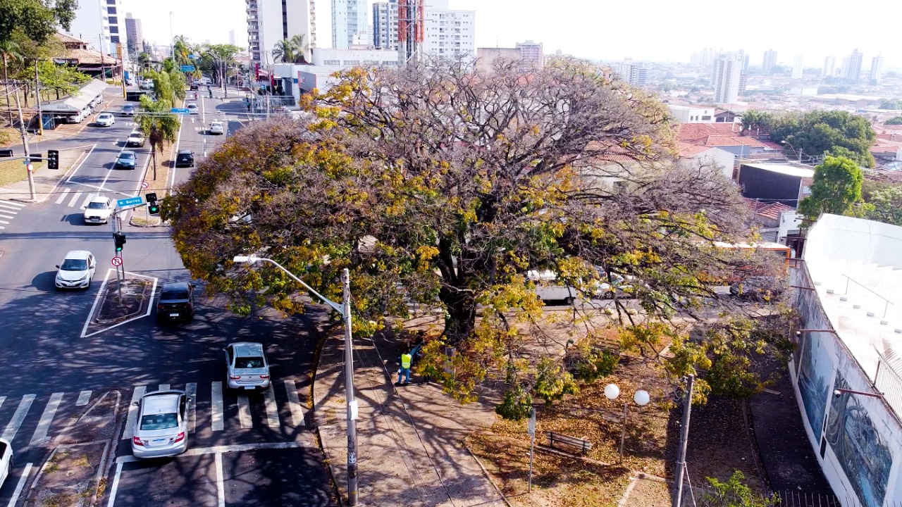 A árvore, centenária, tem aproximadamente 12 metros de altura e passa periodicamente por análises técnicas a fim de manter sua saúde e imponente beleza.