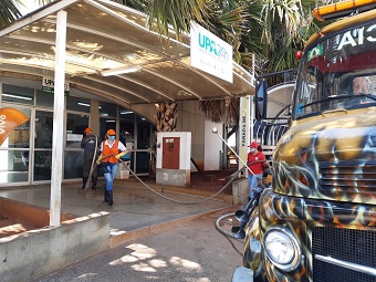 DESINFECÇÃO – Servidores da pasta prosseguem o trabalho de higienização (coordenado pela Defesa Civil) de locais prioritários e/ou de grande circulação, como medida de combate ao novo coronavírus. Nos últimos dias, por exemplo, a equipe da Defesa Civil esteve nas UPAs (Unidades de Pronto de Atendimento) – Vila Rezende, Vila Sônia e Piracicamirim, Hospital dos Fornecedores de Cana, Central de Ortopedia e Traumatologia (COT), Central de Triagem do Coronavírus, Praça José Bonifácio, Base da Guarda Civil, entre outros locais.