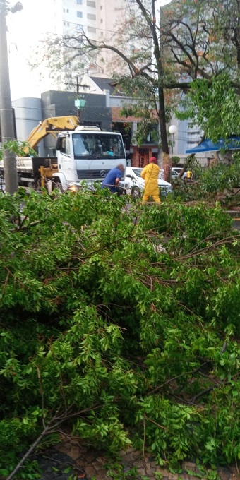 Árvores de grande porte cairam na esquina da Gomes Carneiro com Boa Morte ALAGAMENTOS – O grande volume de água em pouco tempo causou alguns pontos de alagamentos. Foram registrados alagamentos na avenida Armando de Salles Oliveira, 31 de Março, Alberto Vollet Sachs e Piracicamirim. O ribeirão Piracicamirim transbordou em alguns trechos. O diretor da Defesa Civil, Odair Mello, explica que o atendimento aos casos é feito conforme a urgência, com prioridade para pontos onde o trânsito está interrompido e o acesso às residências também.