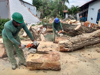 AÇÕES DESDE SEGUNDA – A Sedema estima que a chuva de segunda-feira provocou a queda de, aproximadamente, 70 árvores no município. Até a tarde de hoje (18), antes do novo temporal que atingiu a cidade, as equipes da Defesa Civil, da Secretaria Municipal de Defesa do Meio Ambiente (Sedema), da CPFL e do Corpo de Bombeiros executavam serviços para sanar os estragos causados pela chuva da última segunda-feira (16) – especialmente nos bairros Nova Piracicaba, Castelinho e Vila Rezende. Coordenados pela Defesa Civil, servidores da Sedema já haviam feito os serviços de erradicação/remoção de 24 árvores (aquelas que caíram ou que ficaram comprometidas, oferecendo risco à população) e poda de 15 árvores. Na tarde desta quarta (18), funcionários da Engemaia – empresa terceirizada da Sedema que executa serviços de poda e corte de árvores – trabalharam na remoção de quatro grandes ipês que caíram na rua João Moretti. Também retiraram uma árvore de grande porte na rua Virgulino de Oliveira (uma grande tipuana que derrubou o muro de uma residência) e uma árvore oiti na rua das Rolinhas.
