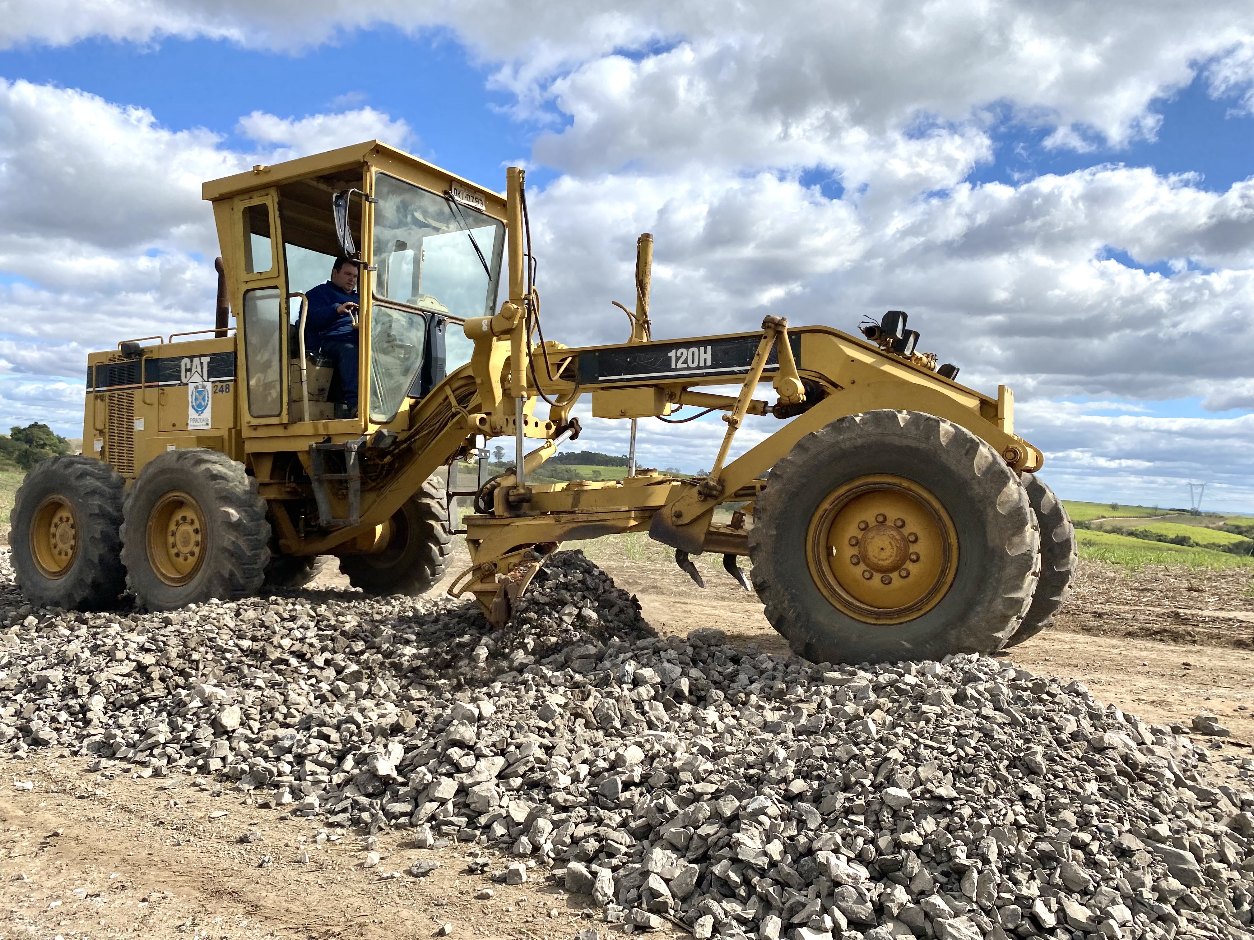 No bairro Volta Grande, a equipe faz a manutenção com máquina na estrada José Saul Chinelatto (PIR 264) até esta sexta-feira, 12/08.
