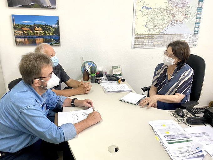 Nesta quarta-feira (26), a secretária da Sema, Nancy Thame, esteve reunida com os técnicos representantes da SAA, Antonio Hélio Leme e Eduardo Pniewsky, para tratar sobre o programa estadual Novo Melhor Caminho e inscrever a estrada do Canal Torto (PIR 011W) para receber os recursos do programa.