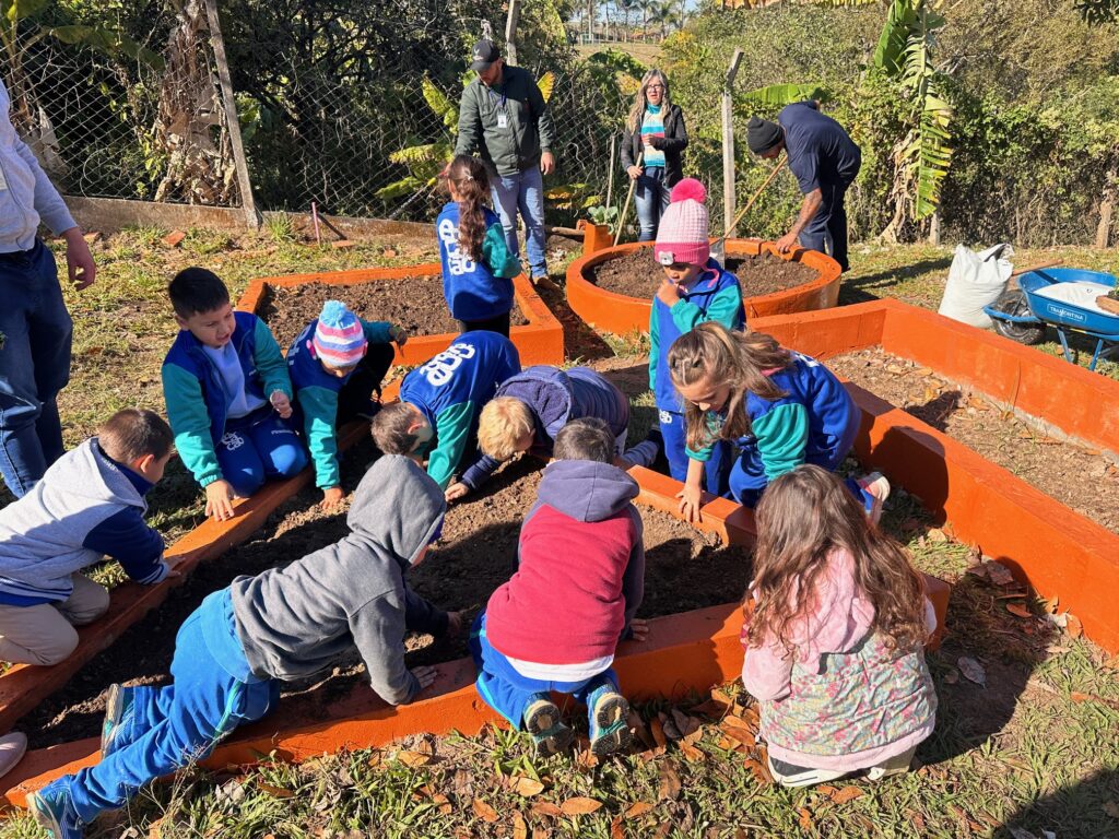 A Escola Nathalio Zanotta Sabino, no bairro Ibitiruna, realizou uma atividade de plantio com os alunos de 4 a 11 anos na última semana. Os alunos plantaram mudas de alface, tomate, hortelã, rúcula e cenoura.