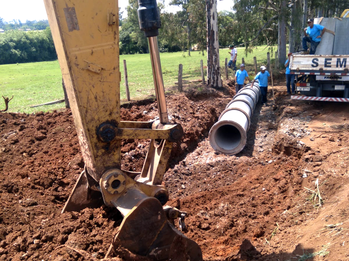 Equipe da Sema faz instalação de tubo de concreto para passagem de água