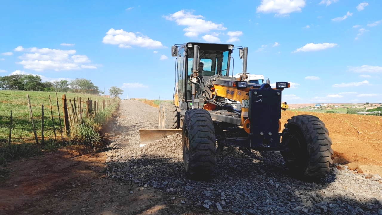 No bairro Godinhos, a equipe está aplicando o material lajão britado na estrada PIR 066, que continua na semana que vem. Também foi instalado um tubo para passagem de água em outra estrada do bairro, na PIR 024.