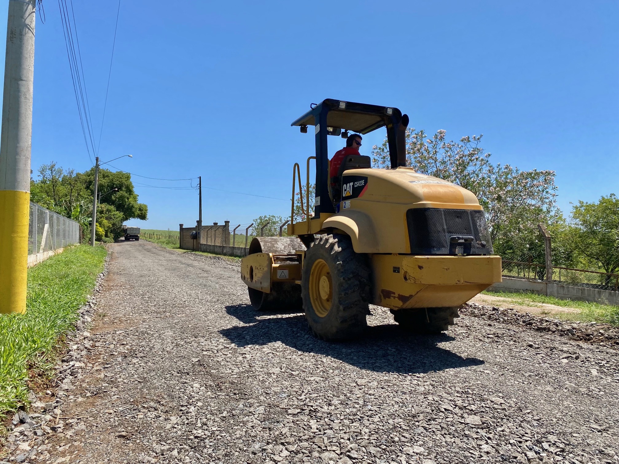 No bairro Capela é aplicado o material pedregulho, na PIR 250, em execução até a próxima semana. Foram concluídas as manutenções com lajão britado nas estradas PIR 021/290, no bairro Pau Preto e na estrada PIR 167/SP 147, no bairro Congonhal.