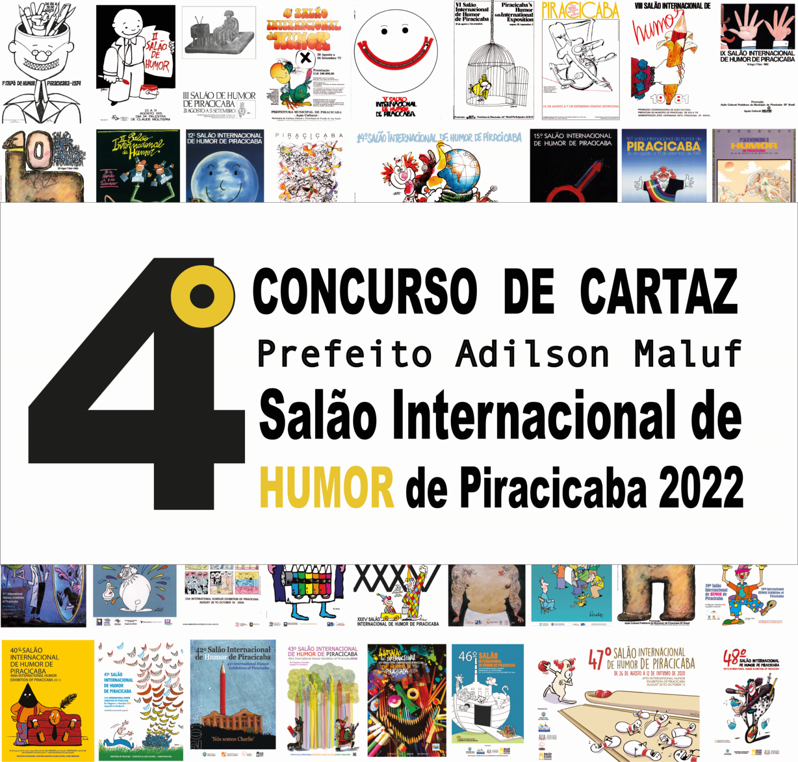 SERVIÇO – Concurso de Cartaz Prefeito Adilson Maluf do 49º Salão Internacional de Humor de Piracicaba. Os Interessados em participar podem se inscrever até 31/03 com entrega diretamente no endereço digital do Salão de Humor de Piracicaba: contato@salaodehumor.piracicaba.sp.gov.br. Informações, regulamento e a ficha de inscrição podem ser acessados pelo site https://salaointernacionaldehumor.com.br/