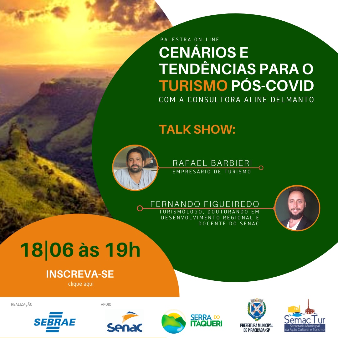 Com o objetivo de incentivar os empreendedores do setor de turismo da Serra do Itaqueri, a Secretaria Municipal da Ação Cultural (SemacTur) em parceria com o Sebrae-SP realiza palestra, talk show e uma série de cursos on-line no mês de junho. As inscrições estão abertas e são gratuitas. A iniciativa é dos Escritórios Regionais do Sebrae-SP de Piracicaba e São Carlos e abrange os municípios de Águas de São Pedro, Analândia, Brotas, Charqueada, Corumbataí, Ipeúna, Itirapina, Limeira, Piracicaba, Rio Claro, Santa Maria da Serra, São Pedro e Torrinha.