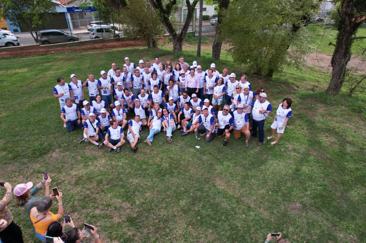 Os formandos de 1987, a turma F87, que completam 35 anos de formados em 2022, definiu acordo com o Semae para a pintura do reservatório (Warwick Manfrinato) O A ENCARNADO E A ARANHA – Na história contada pelos esalqueanos, o A encarnado surgiu em meados de 1931, quando o estudante de agronomia Ismar Ramos, na intenção de criar um símbolo para representar os atletas da Esalq, observou, nos contornos de um sapo, o que parecia uma letra A. A ideia tomou forma quando desenhou a letra em tom vermelho carmim, que logo passou a estampar os uniformes de times da Associação Atlética Acadêmica Luiz de Queiroz (AAALQ). O nome A Encarnado é creditado ao jornalista Delfim Rocha Netto, que batizou o logo, além de ser um dos principais responsáveis por divulgar o símbolo atrelado à Esalq. Já o símbolo da aranha começou com Philipe Cabral de Vasconcelos Filho, em 1934, que, ao buscar material para um trabalho de botânica, encontrou uma pequena aranha tendo no dorso do abdômen a letra A, naturalmente desenhada, semelhante ao A criado por Ramos três anos antes. A descoberta não foi apenas curiosa, mas se tratava também de uma nova espécie ainda não catalogada, e ganhou, do professor Piza, o nome de Metadiaea litterata. Anos mais tarde, foi assumida como mais um símbolo esalqueano.