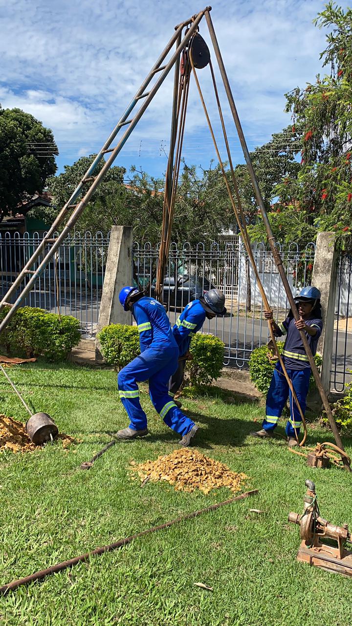 Inicialmente, foram realizados serviços de sondagem e topografia para finalização do projeto – realizado pelo engenheiro e projetista Paulo Lucio Ribeiro Jr.- , bem como, a elaboração dos orçamentos da obra. O projeto compreende também a instalação de uma nova casa de bombas, buscando a melhora na eficiência energética e distribuição.