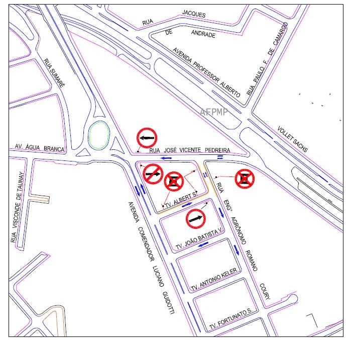 Durante esta fase inicial da reorganização viária serão alterados os sentidos da travessa Albert Schweitler e da rua Engenheiro Agrônomo Romano Coury (primeiras quadras) e, posteriormente, trecho parcial da rua José Vicente Pedreira.
