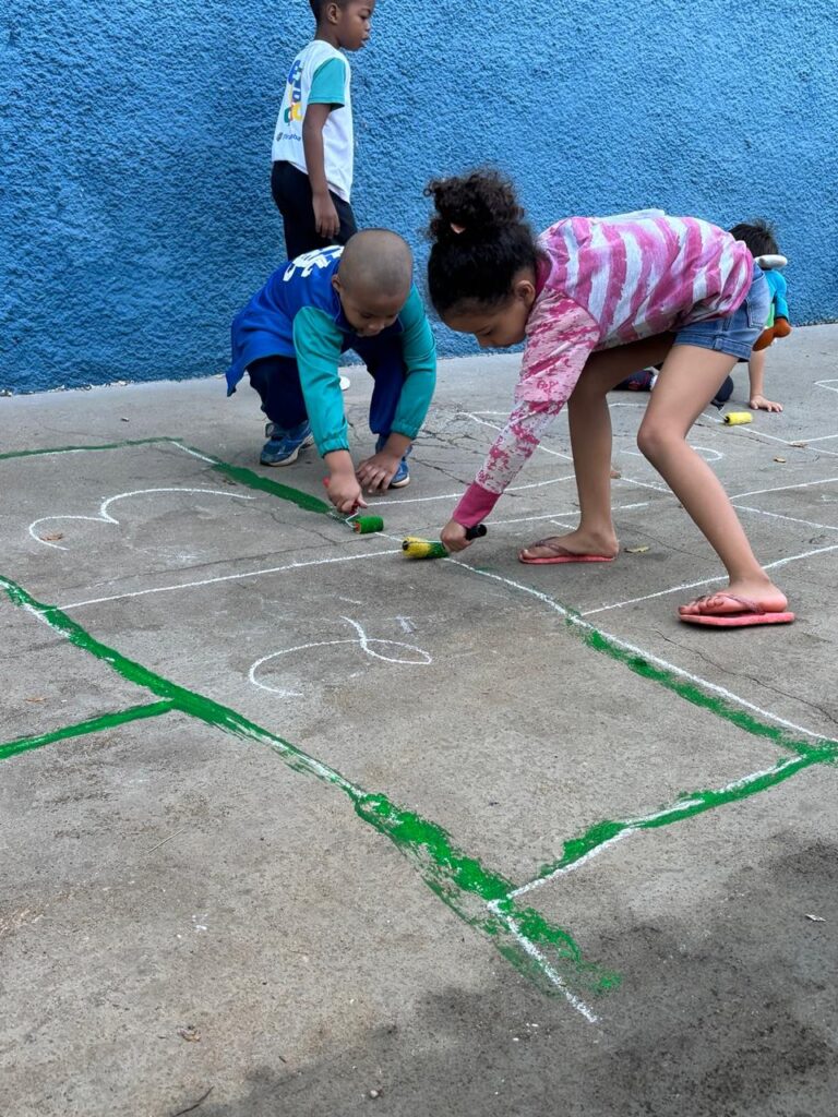 Na escola Ilda Jenny, a semana começou com uma oficina de pipas, onde os próprios alunos confeccionaram seus brinquedos. O encerramento prevê um momento coletivo para soltar as pipas no campo ao lado da escola, resgatando uma das brincadeiras mais tradicionais da infância.