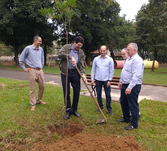 Secretário José Otávio Menten ajudou no plantio de muda de árvore