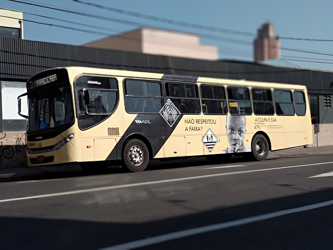 Ônibus da Via ágicl circulou por toda a cidade e chamou atenção pela mensagem da campanha A Culpa é Sua