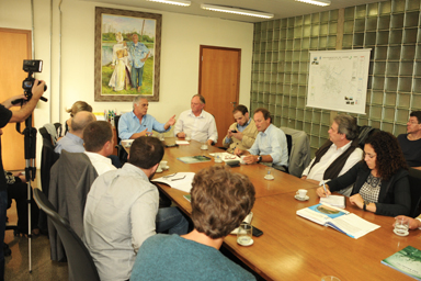 Representantes de vários países da América Latina e da Europa, além de especialistas brasileiros em recursos hídricos, estão em Piracicaba para participar, nesta terça-feira, 07/06, do seminário Crise Hídrica e Mudanças Climáticas. O evento acontece no Hotel Beira Rio, a partir das 9h. A comitiva esteve na tarde de hoje, 6/6, no gabinete do prefeito Gabriel Ferrato, que também é presidente dos Comitês das Bacias PCJ (Bacias Hidrográficas dos Rios Piracicaba, Capivari e Jundiaí).
