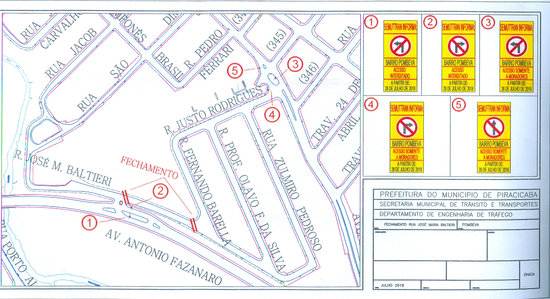 A partir do dia 28 de julho (2018), a Semuttran – Secretaria Municipal de Trânsito e Transportes interditará a rua José M. Baltieri, que permite o acesso ao bairro Pombeva. A entrada nesta região será possível apenas através da rua Justo Rodrigues, no entroncamento com a avenida Rio das Pedras.