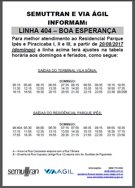 Semuttran e Via Ágil ajustam horários na Linha 404 – Boa Esperança