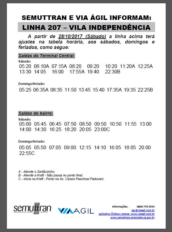 Semuttran e Via Ágil anunciam alterações em horários de duas linhas