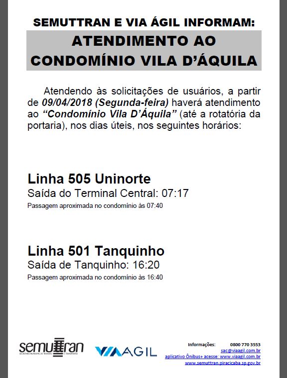 Para mais informações acesse: http://viaagil.com.br/linhas-e-horarios/