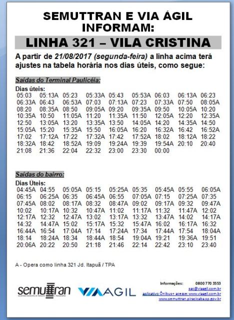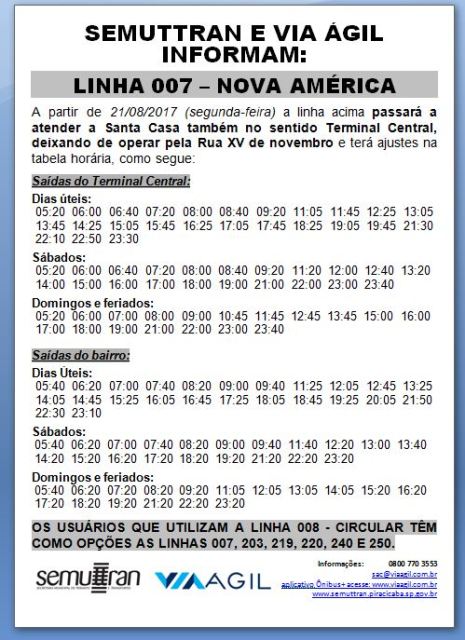 Semuttran e Via Ágil informam ajustes operacionais nas linhas 007, 101 e 321