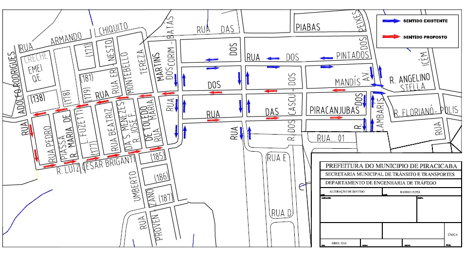No dia 17 de maio (2016), a Semuttran – Secretaria Municipal de Trânsito e Transportes implantará o sentido único de direção em algumas vias do bairro Jupiá: