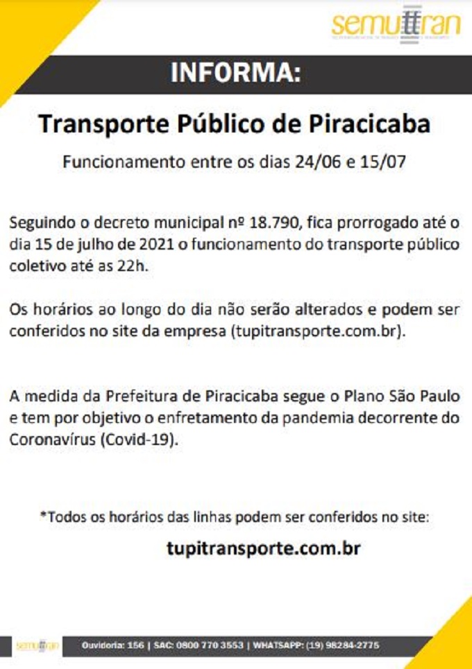 Semuttran informa: Funcionamento do transporte público
