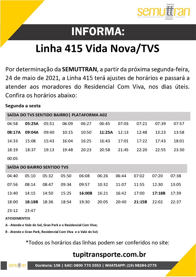 Semuttran informa: Linha Vida 415 Vida Nova/TVS