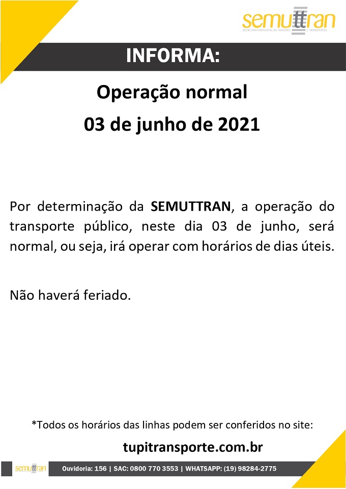 Semuttran informa: Transporte público funcionará normalmente nesta quinta-feira (03)